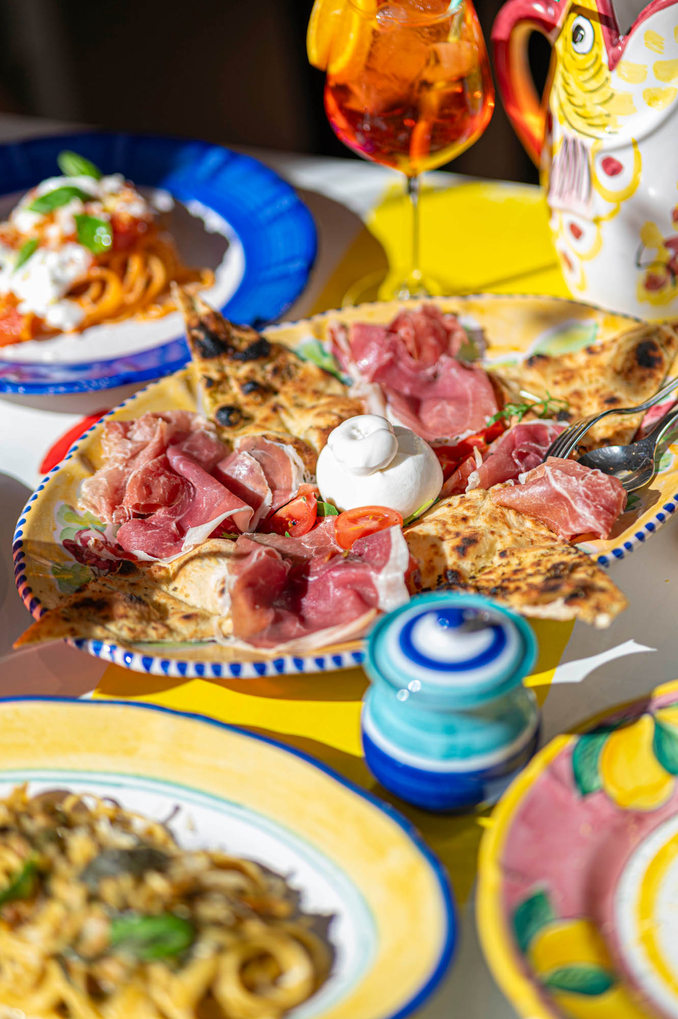 Una base soffice con pomodoro San Marzano, burrata cremosa e rucola fresca. Il gusto del Mediterraneo in ogni morso.